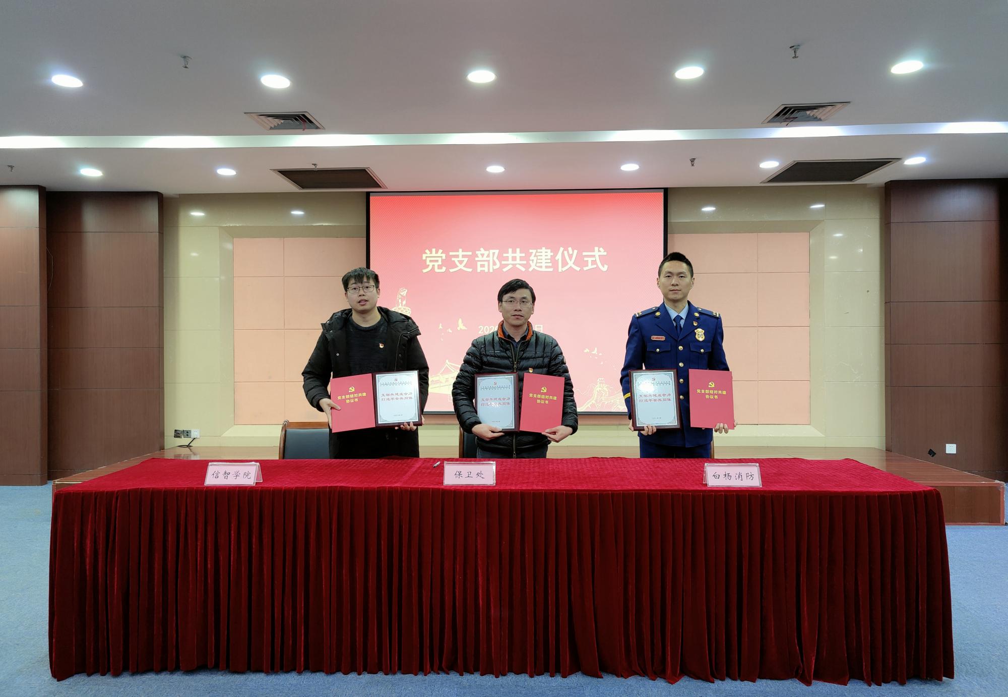 1月7日下午,保卫处党支部与白杨消防救援站党支部、信息管理与人工智能澳门新甫京娱乐娱城平台学生第四党支部举行联合共建仪式。信息管理与人工智能澳门新甫京娱乐娱城平台党委副书记田聪应邀参加并致辞。仪式由保卫处党支部书记吴俊主持。