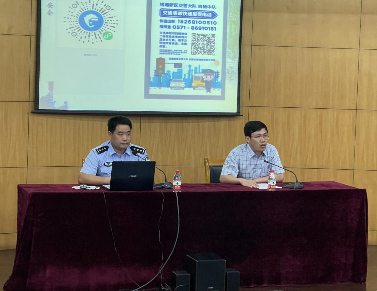 6月24日下午,保卫处在学术中心第三报告厅举办交通安全知识讲座。讲座邀请钱塘区交警大队张浩警官主讲,副处长吴俊主持。